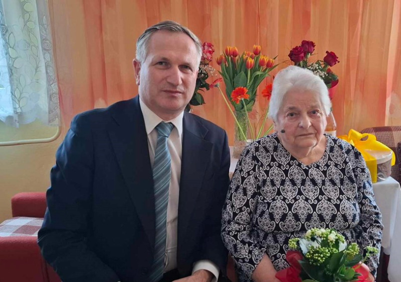 Wójt w imieniu władz samorządowych wręczył Jubilatce upominek i kwiaty oraz złożył najserdeczniejsze życzenia. Pani Janina przyjęła gości w swoim domu, w miłym towarzystwie rodziny. Solenizantka urodziła 5 dzieci, doczekała się 11 wnuków i 16 prawnuków.