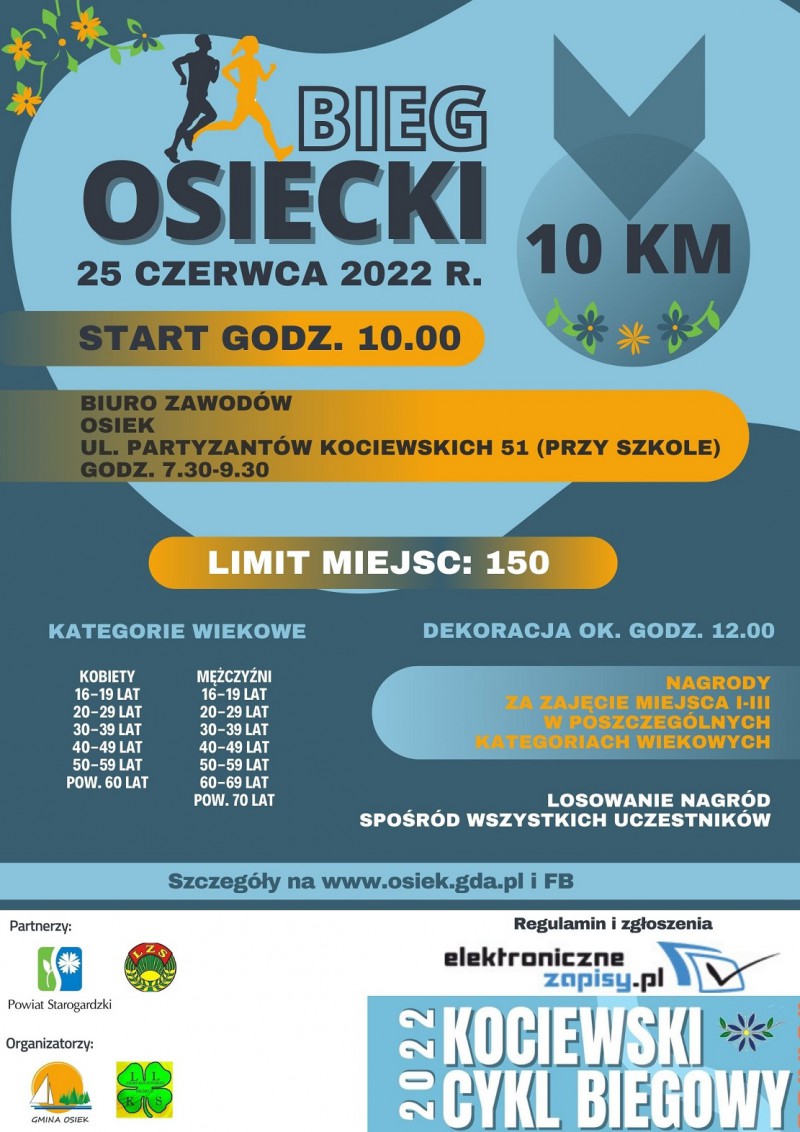 25 czerwca 2022 r. w Osieku odbędzie się Bieg Osiecki! Impreza sportowa na rozpoczęcie wakacji. Po raz drugi biegamy w Osieku! Tym razem w ramach Kociewskiego Cyklu Biegowego 2022.