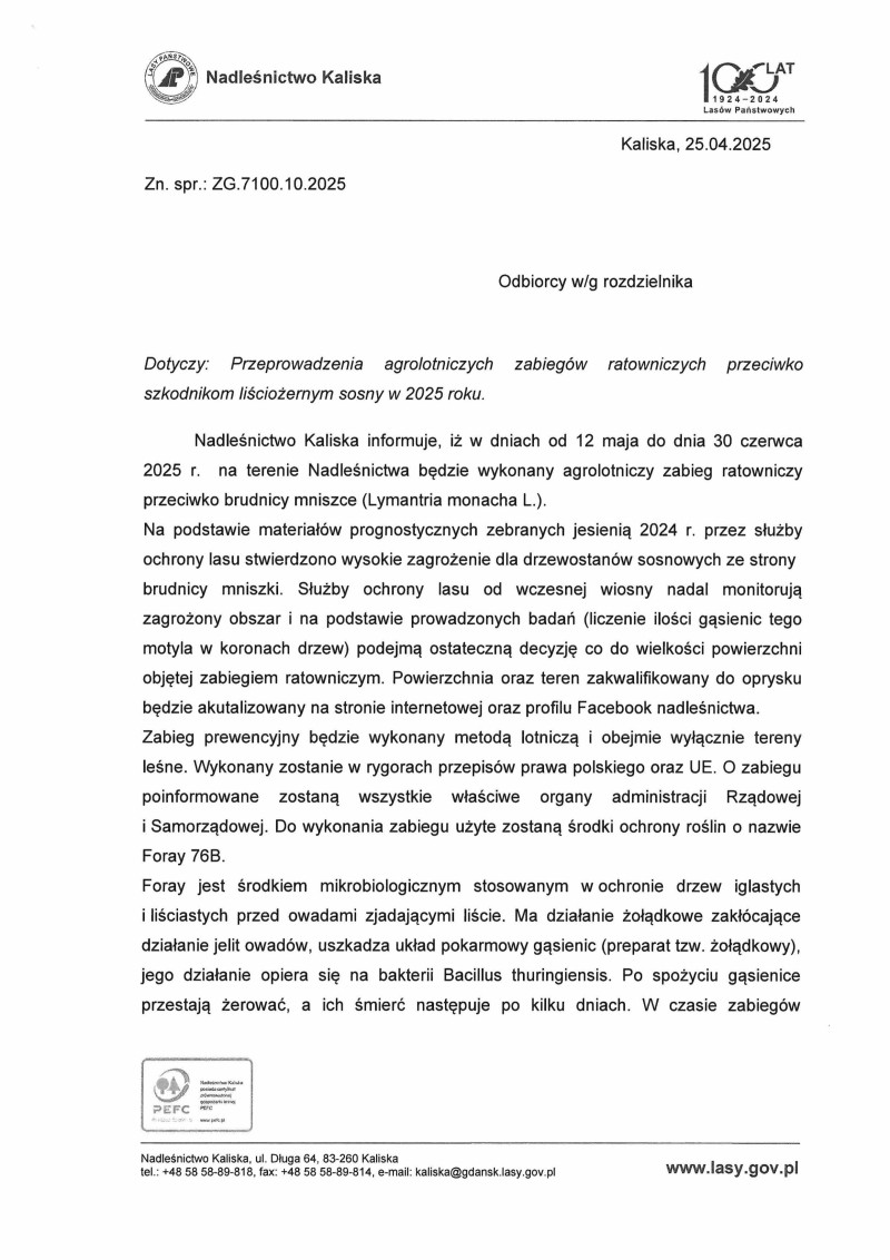 Informacja o agrolotniczych zabiegach przeciwko brudnicy mniszce