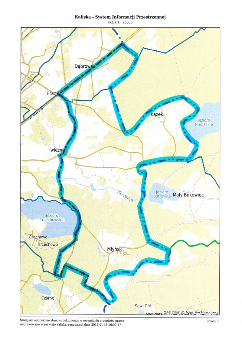 Granice obwodu na terenie Gminy Kaliska |