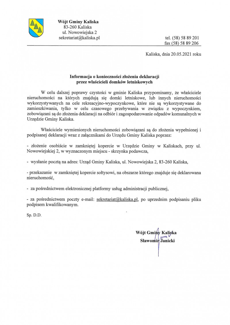 Informacja o konieczności złożenia deklaracji na odpady komunalne przez właścicieli domków letniskowych