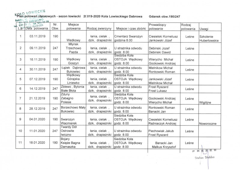 Informacja o planie polowań zbiorowych - sezon łowiecki 2019/2020
