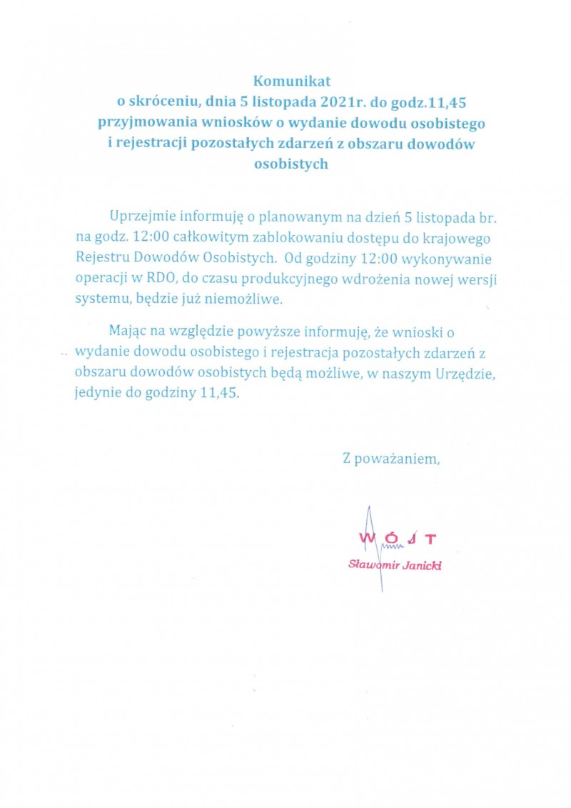 Informacja o skróceniu przyjmowania wniosków o wydanie dowodu osobistego