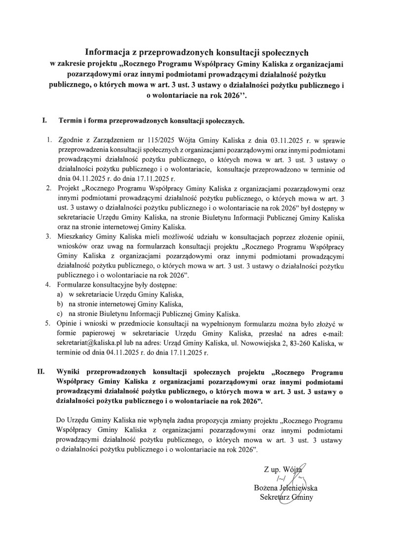 Zaproszenie na XXIII Sesję Rady Gminy Kaliska