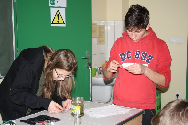 W pracowni Pana Ciekawskiego oraz ICT Robotyka, natomiast uczniowie gimnazjum byli uczestnikami laboratoriów przeprowadzonych na Wydziale Biologii i Fizyki Uniwersytetu Gdańskiego. Łącznie na przełomie marca i kwietnia odbyło się siedem wycieczek.