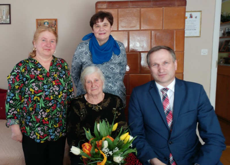 W dniu 06.04.2018 roku swoje 91 urodziny obchodzi Pani Aniela Litzau zamieszkała w Kaliskach. Z okazji tak wspaniałej rocznicy Jubilatkę odwiedził Wójt Gminy Kaliska Sławomir Janicki z pracownikiem GOPS p.Teresą Jagiełło.