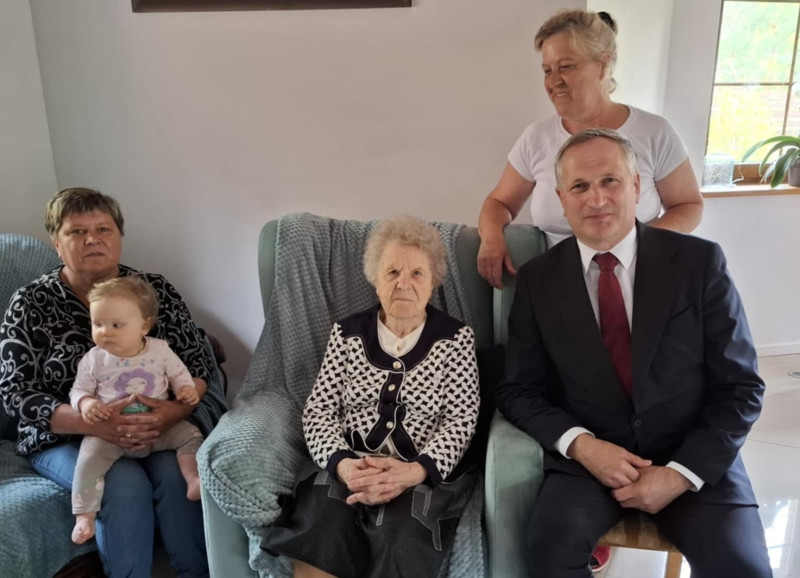 Wójt w imieniu władz samorządowych wręczył Solenizantce kwiaty i upominek, złożył najserdeczniejsze życzenia, życząc kolejnych lat w dobrym zdrowiu oraz wielu chwil w gronie troskliwej rodziny. Pani Marianna przyjęła gości w domu córki Barbary, w miłym towarzystwie bliskich Jej osób, wspominając minione lata.