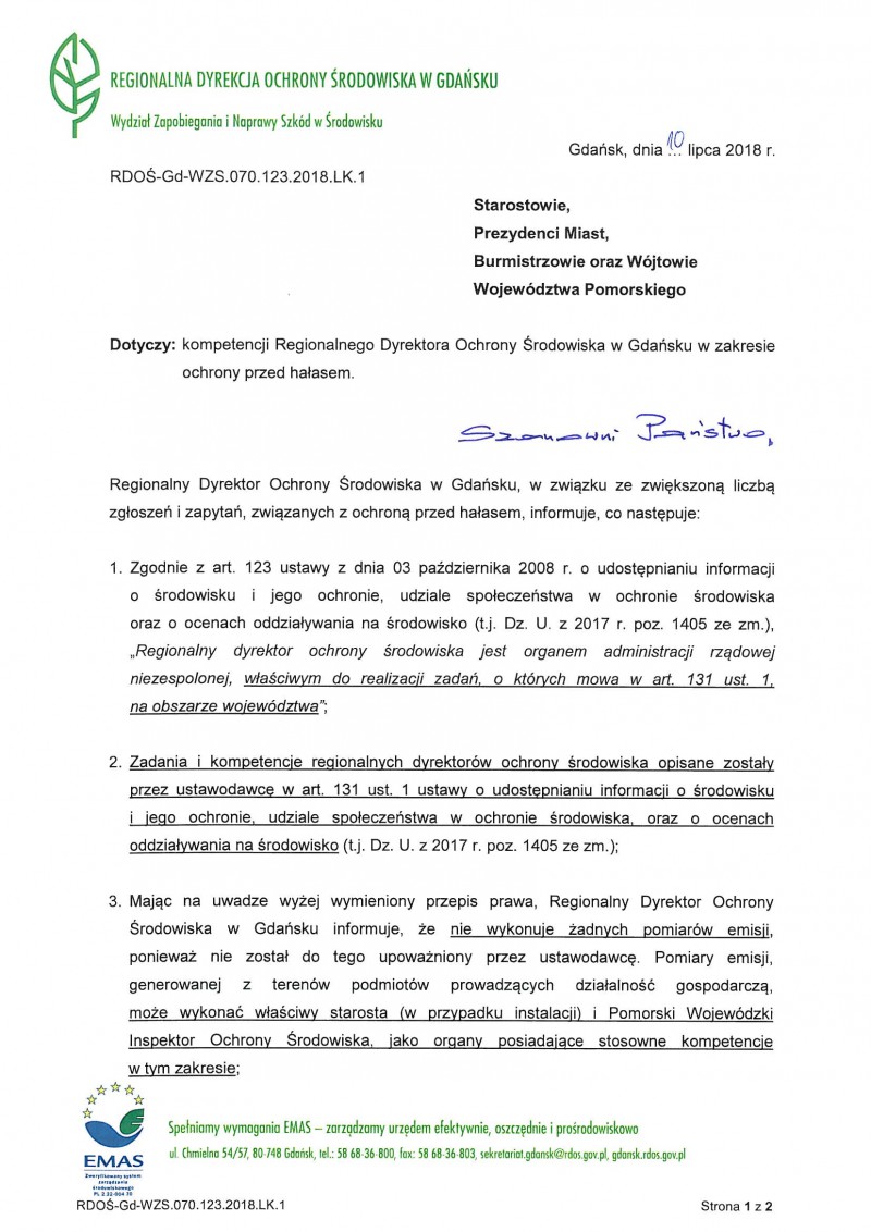 Kompetencje Regionalnego Dyrektora Ochrony Środowiska w zakresie ochrony przed hałasem