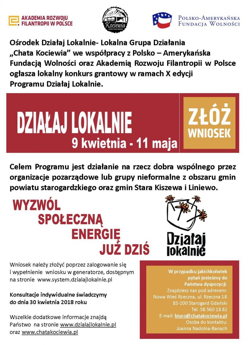 Nabór wniosków do konkursu grantowego Działaj Lokalnie
