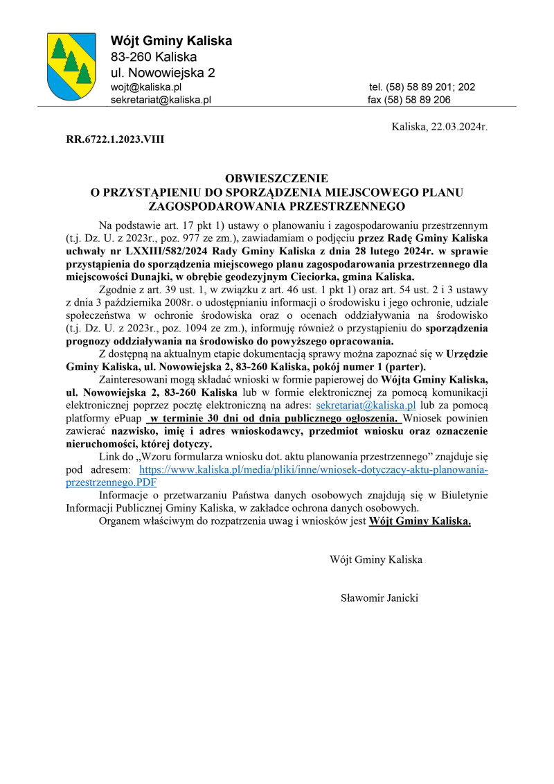 OBWIESZCZENIE O PRZYSTĄPIENIU DO SPORZĄDZENIA MIEJSCOWEGO PLANU ZAGOSPODAROWANIA PRZESTRZENNEGO