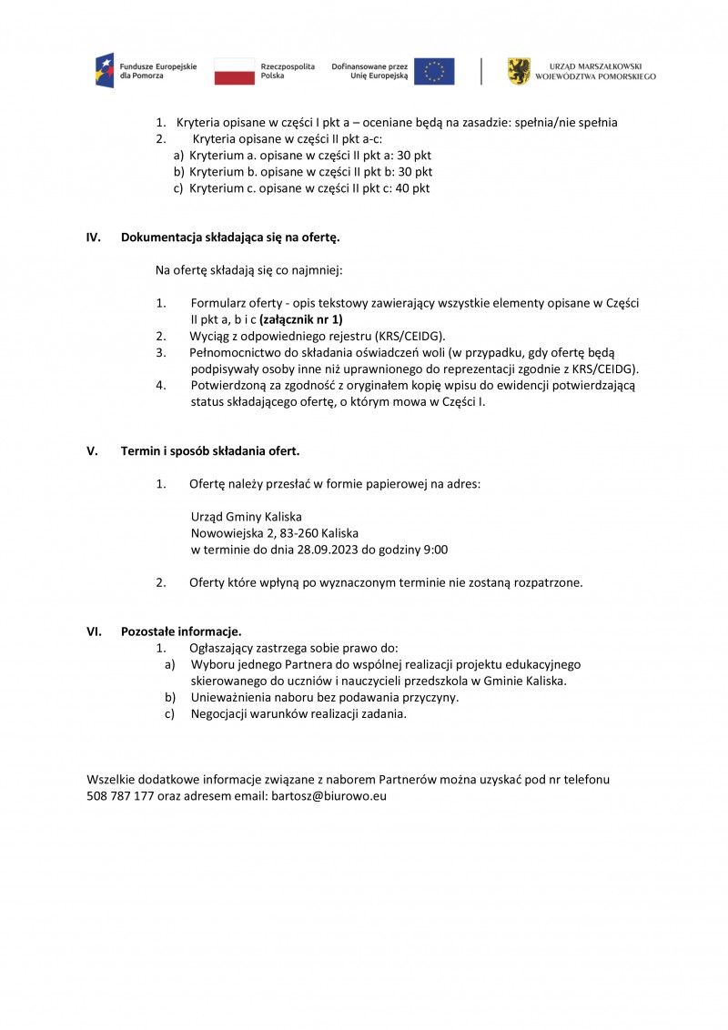 Ogłoszenie o naborze Partnera do realizacji projektu unijnego
