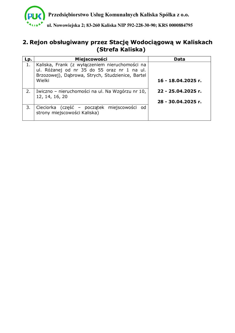 Budowa sieci kanalizacji sanitarnej, rozbudowa i przebudowa sieci wodociągowej dla miejscowości Cieciorka, Dąbrowa, Iwiczno wraz z rozbudową oczyszczalni ścieków w Kaliskach