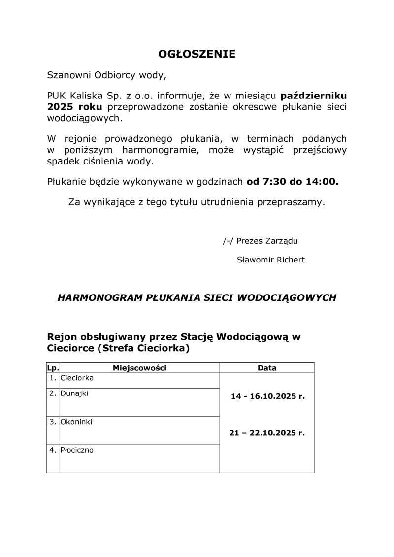 Budowa sieci kanalizacji sanitarnej, rozbudowa i przebudowa sieci wodociągowej dla miejscowości Cieciorka, Dąbrowa, Iwiczno wraz z rozbudową oczyszczalni ścieków w Kaliskach