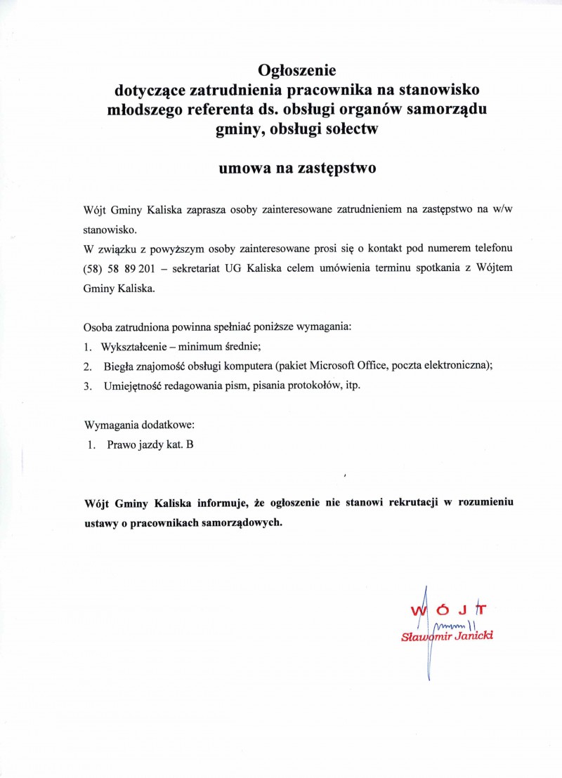 Wójt Gminy Kaliska ogłasza przetargi na zbycie nieruchomości gruntowych