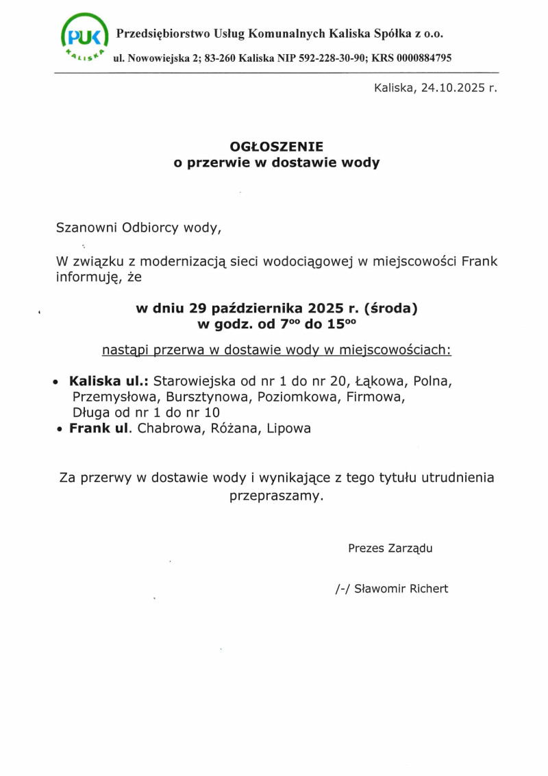 Budowa sieci kanalizacji sanitarnej, rozbudowa i przebudowa sieci wodociągowej dla miejscowości Cieciorka, Dąbrowa, Iwiczno wraz z rozbudową oczyszczalni ścieków w Kaliskach