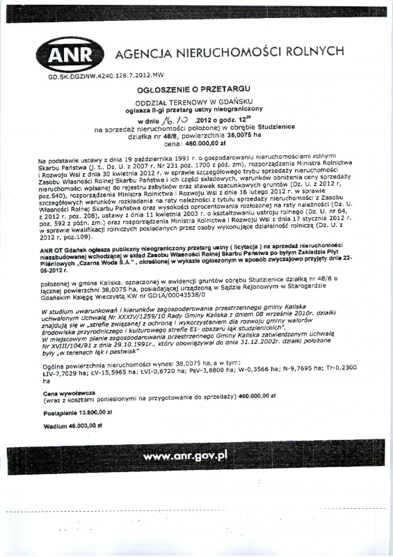 Wójt Gminy Kaliska ogłasza przetargi na zbycie nieruchomości gruntowych