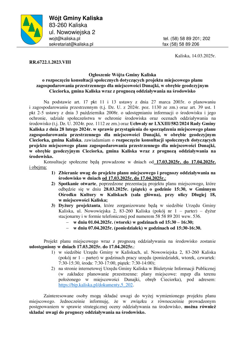 Ogłoszenie o rozpoczęciu konsultacji społecznych MPZP Dunajki