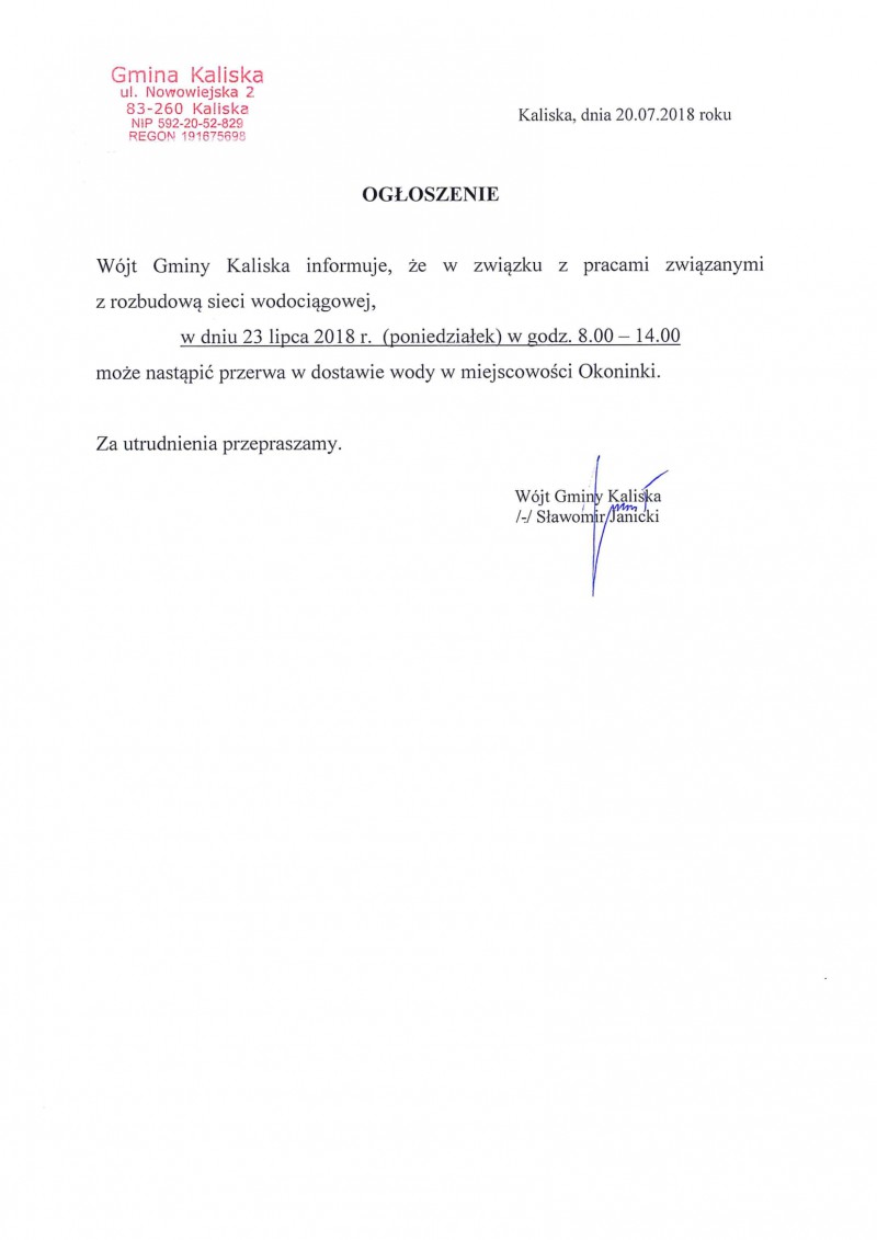 Budowa sieci kanalizacji sanitarnej, rozbudowa i przebudowa sieci wodociągowej dla miejscowości Cieciorka, Dąbrowa, Iwiczno wraz z rozbudową oczyszczalni ścieków w Kaliskach