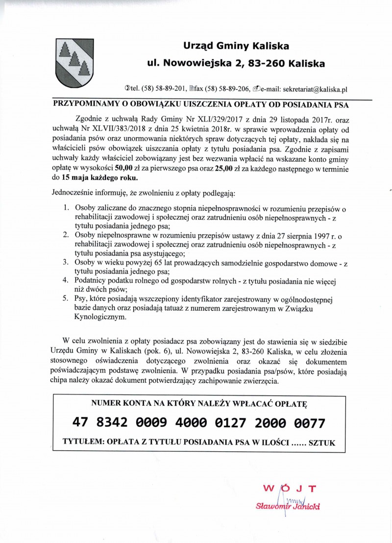 Przypominamy o obowiązku uiszczania opłaty od posiadania psa
