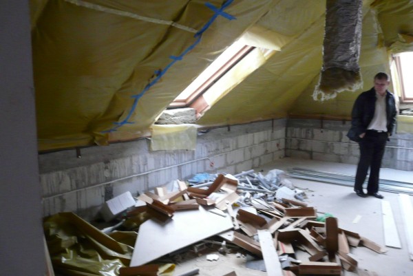 Tak postępowały prace na poddaszu Gimnazjum w Kaliskach: