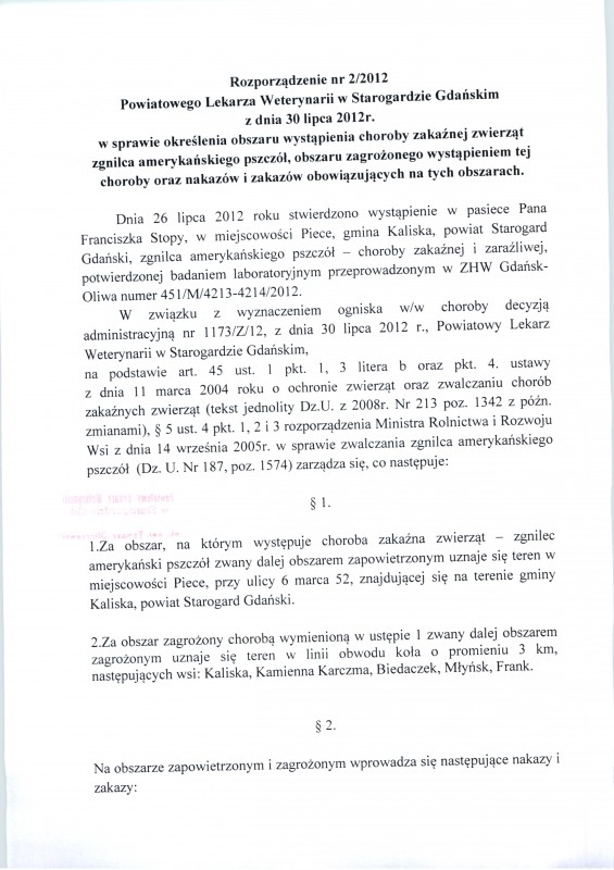 Rozporządzenie dotyczące wystąpienia choroby zakaźnej zwierząt zgnilica amerykańskiego pszczół