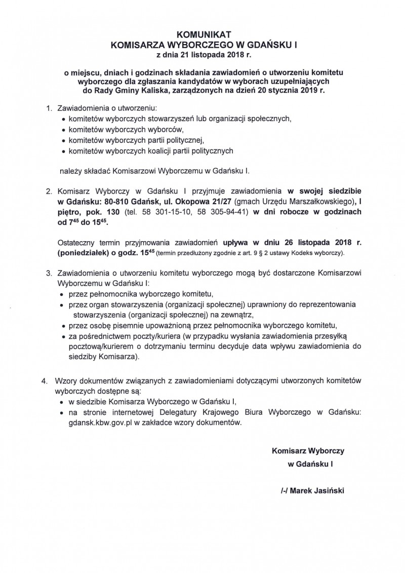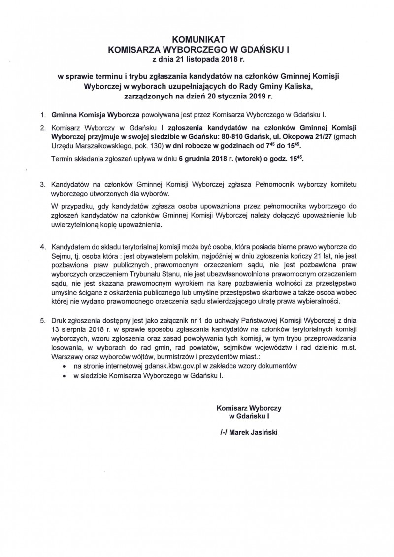 Wybory uzupełniające do Rady Gminy Kaliska 20 styczeń 2019 r.