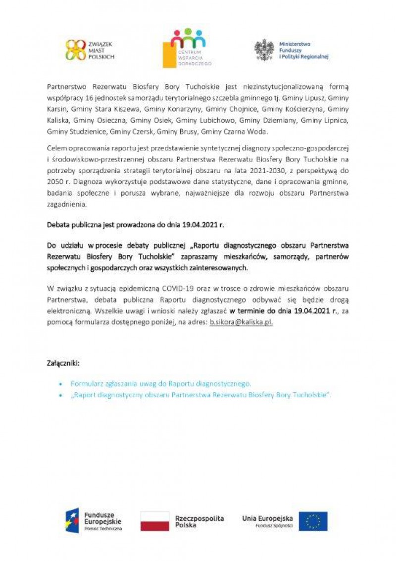 Zaproszenie do udziału w debacie publicznej ,,Raportu diagnostycznego obszaru Partnerstwa Rezerwatu Biosfery Bory Tucholskie''