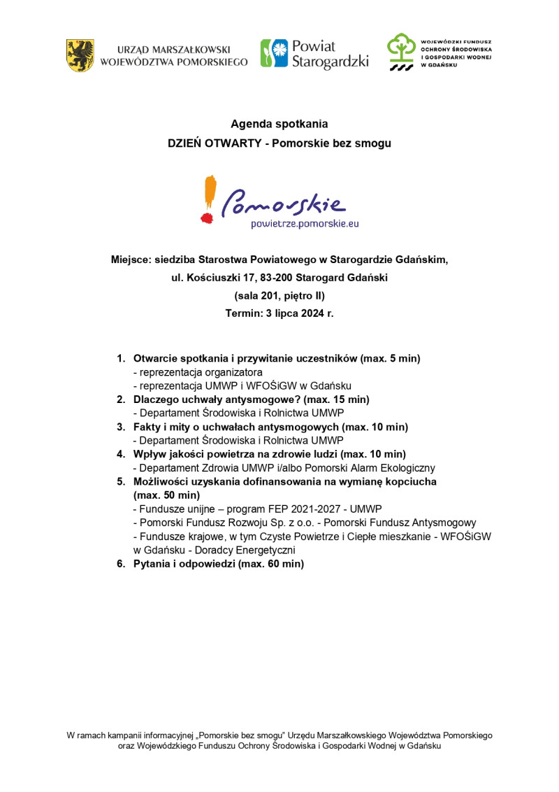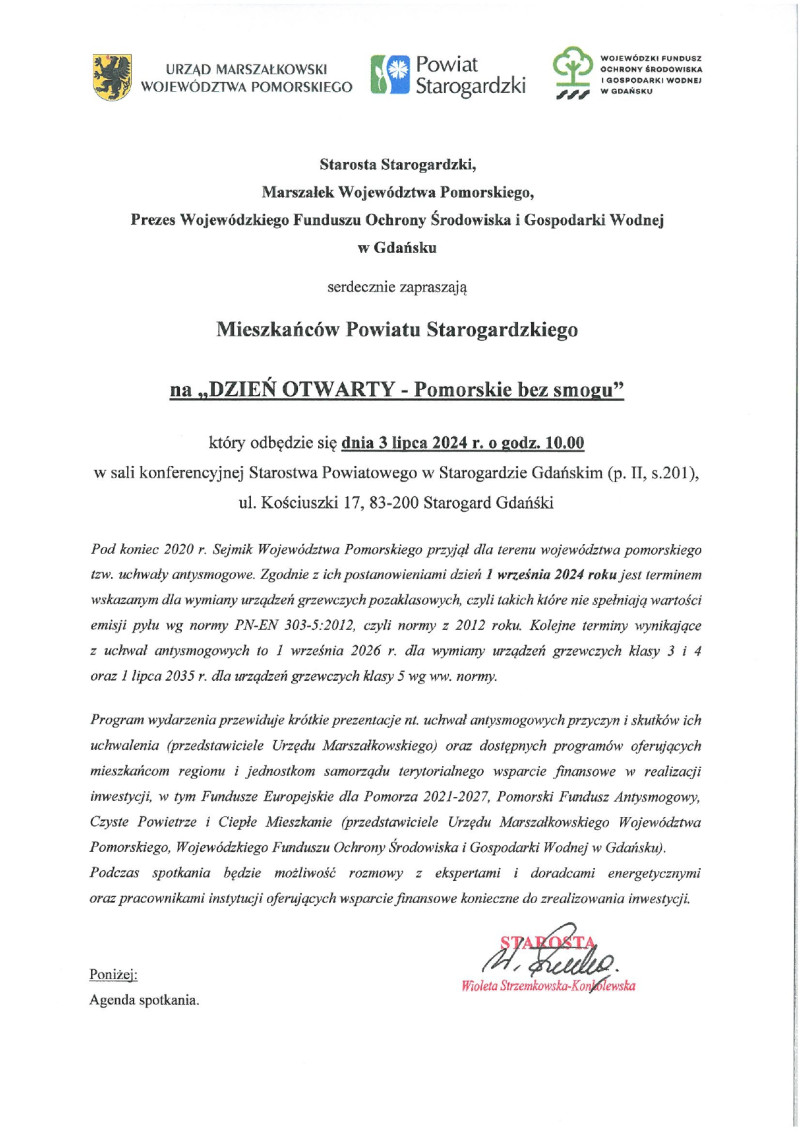 Zaproszenie na "Dzień otwarty - Pomorskie bez smogu"