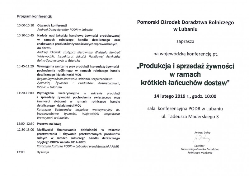 Zaproszenie na konferencję ,,Produkcja i sprzedaż żywności''