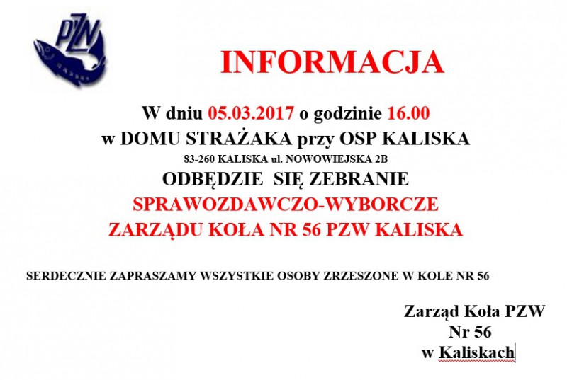 Zaproszenie na zebranie sprawozdawczo-wyborcze Zarządu Koła PZW