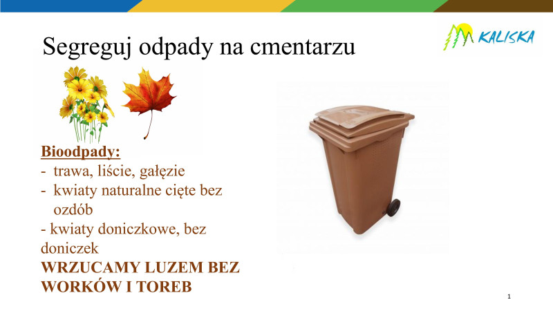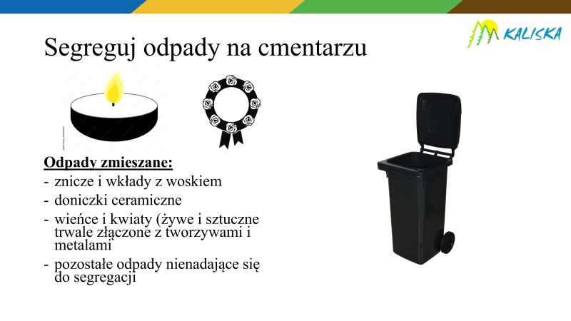 W związku ze zbliżającymi się obchodami dnia Wszystkich Świętych przypominamy Państwu o zasadach segregacji odpadów komunalnych na cmentarzach.