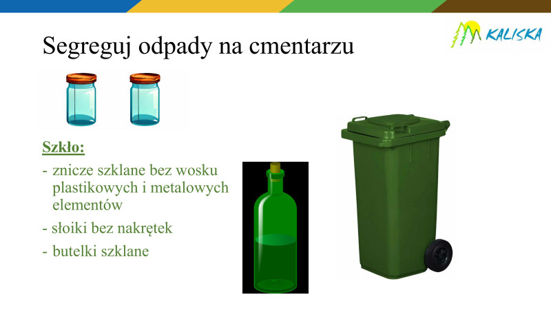 Każdy z nas może przyczynić się do zmniejszenia ilości odpadów na cmentarzu, do obowiązków każdego z nas należy przestrzeganie segregacji odpadów cmentarnych. W niniejszej prezentacji opisane zostało co należy zrobić z wypalonymi zniczami i odpadami, które pozostały po porządkowaniu nagrobków.