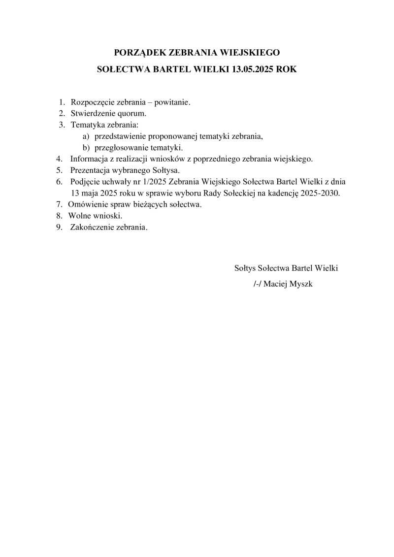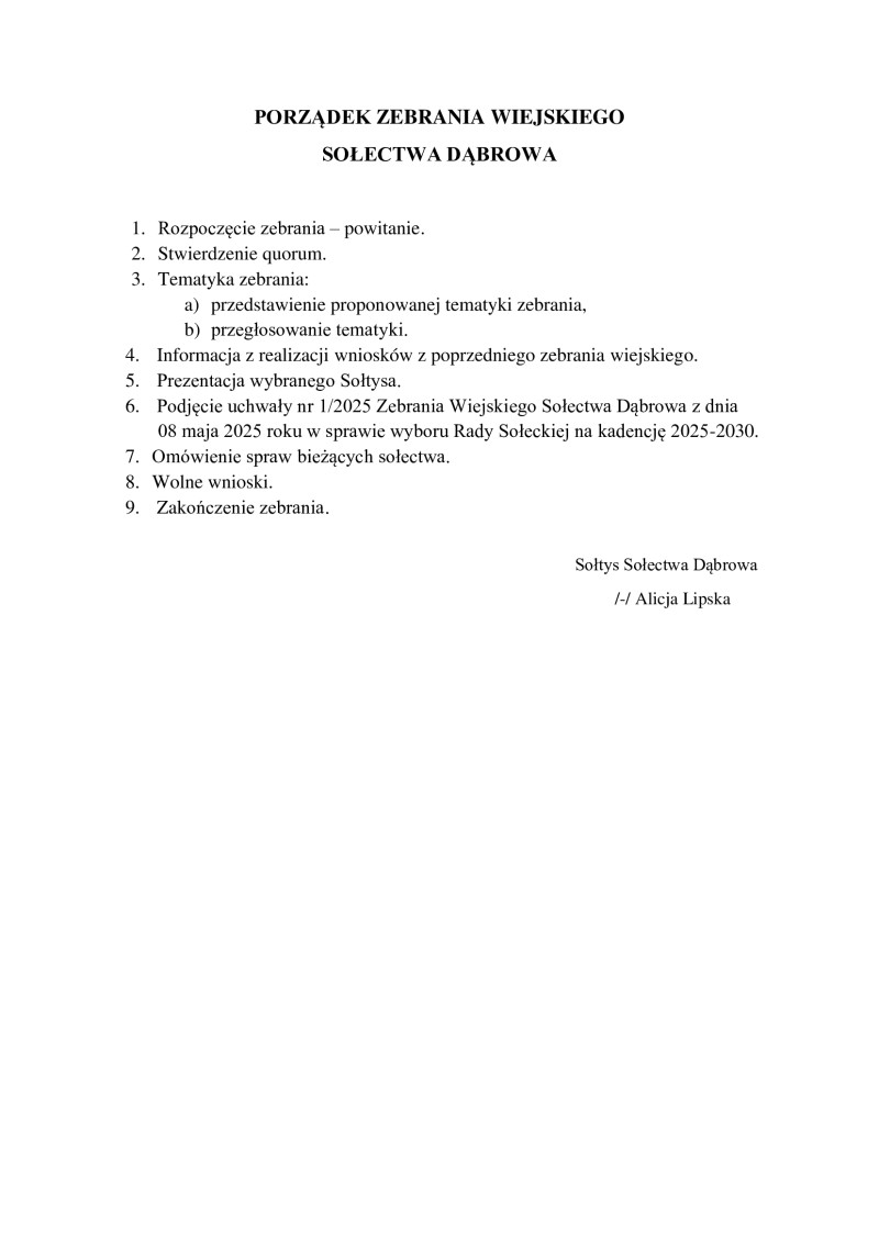 Zebrania wiejskie Sołectw Gminy Kaliska