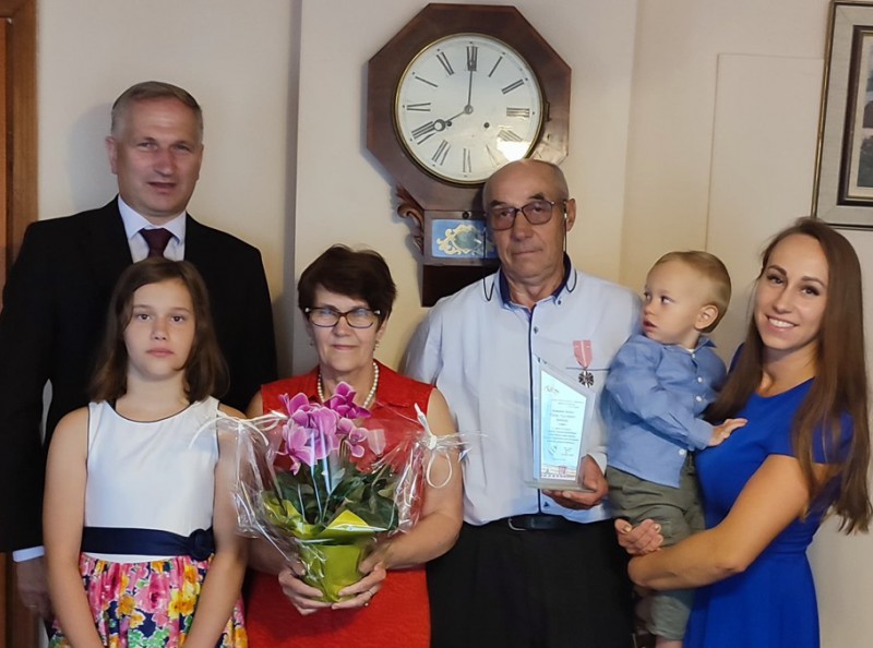 Z okazji pięknego jubileuszu „Złotych Godów” z serdecznymi życzeniami i medalami od Prezydenta RP odwiedzili Jubilatów – Wójt Gminy Kaliska i Kierownik USC Kaliska.
