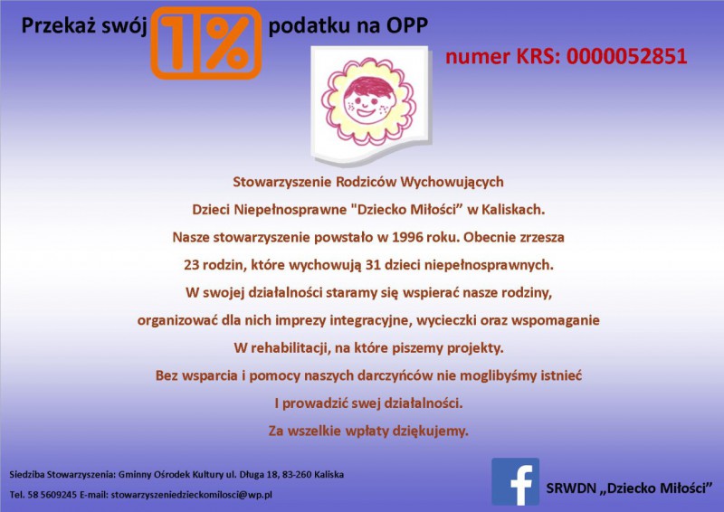 1% dla Stowarzyszenia "Dziecko Miłości" w Kaliskach