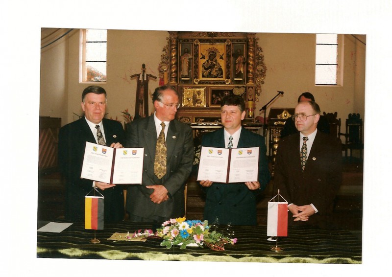 Uroczyste podpisanie Aktu Partnerstwa miało miejsce 2 maja 1998 roku w kościele parafialnym w Kaliskach. Dnia 22 maja 1998 roku, w Reinfeld, nastąpiło powtórne złożenie podpisów pod Aktem Partnerstwa.