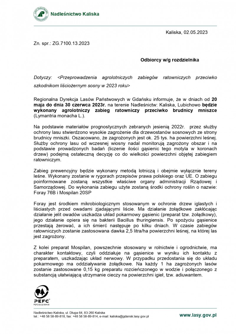 Agrolotnicze zabiegi ratownicze przeciwko szkodnikom liściożernym sosny