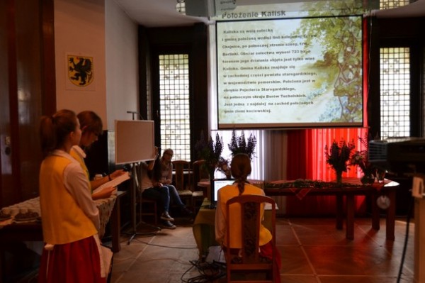 Na konkurs przygotowaliśmy prezentację multimedialną o walorach turystycznych i przyrodniczych naszej gminy, uczennica D. Litzau wyrecytowała wiersz „W Kaliskach”, gadkę kociewską, którą na tę okazję napisał p. Piotr Wróblewski, poczęstunek w postaci rogalików z nadzieniem różanym, który upiekła p. Małgorzata Kozłowska oraz przygotowaliśmy wystawę promującą Kociewie.
