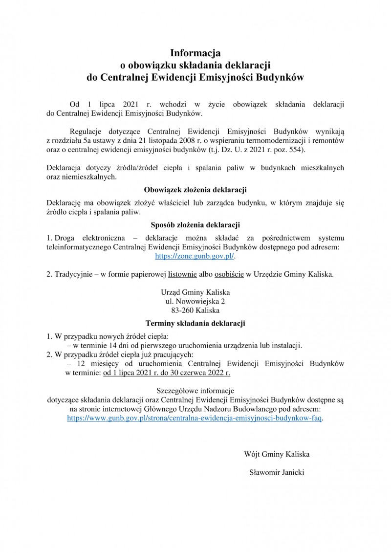 B / Informacja o obowiązku składania deklaracji do Centralnej Ewidencji Emisyjności Budynków
