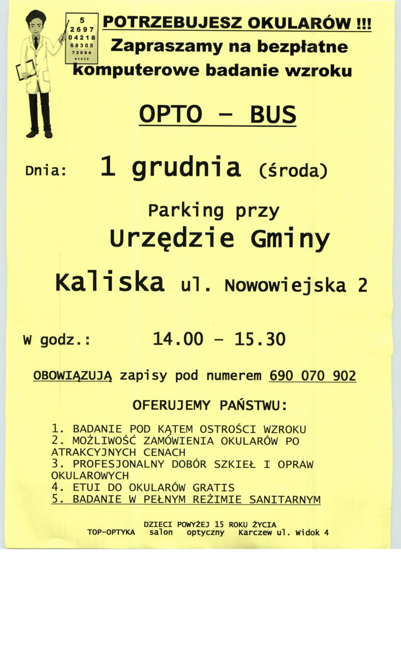 Bezpłatne badanie wzroku przy Urzędzie Gminy Kaliska