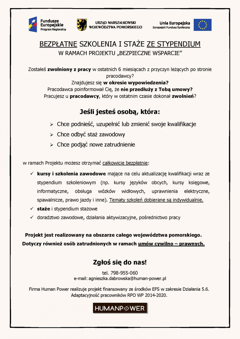 Bezpłatne szkolenia i staże ze stypendium