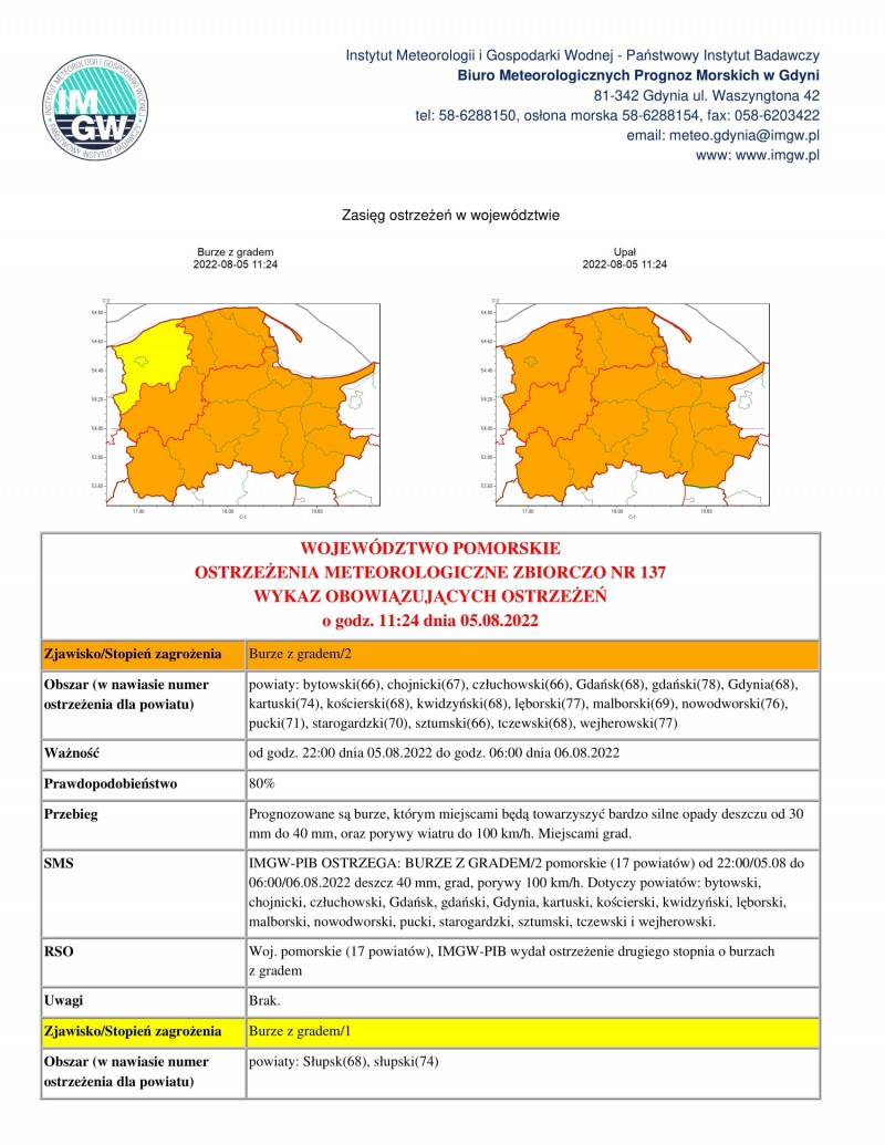 Burze z gradem - Ostrzeżenie meteorologiczne