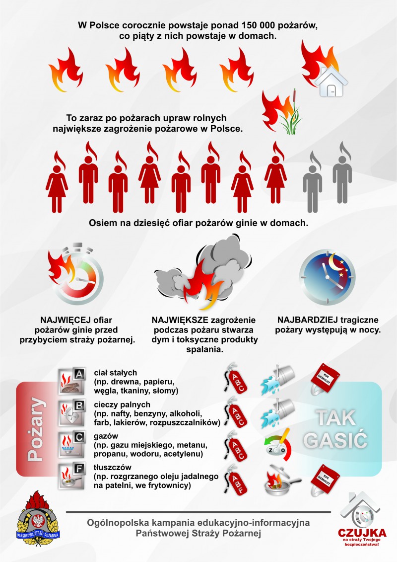 W okresie jesienno-zimowym, w naszym kraju w mieszkaniach i domach jednorodzinnych wzrasta ryzyko powstania pożarów. Najczęściej dochodzi do nich w wyniku wad, albo niewłaściwej eksploatacji urządzeń grzewczych, elektrycznych i gazowych. W tym samym okresie odnotowywany jest także wzrost liczby zatruć tlenkiem węgla, zwanym "cichym zabójcą", gdyż jest niewidoczny oraz nie ma smaku, ani zapachu.