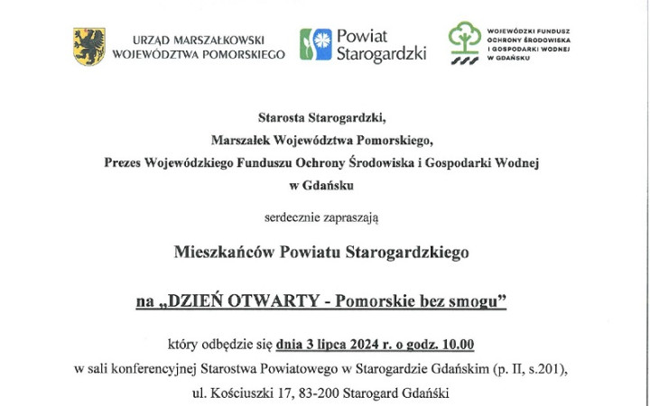 Zaproszenie na "Dzień otwarty - Pomorskie bez smogu"