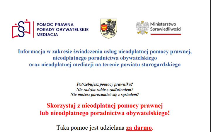 Informacja dot. nieodpłatnej pomocy prawnej, nieodpłatnego poradnic...