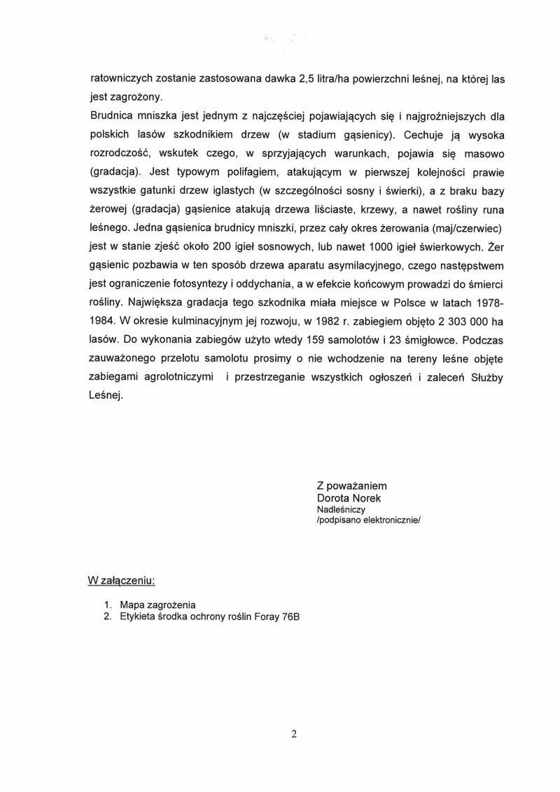 Informacja o agrolotniczych zabiegach przeciwko brudnicy mniszce