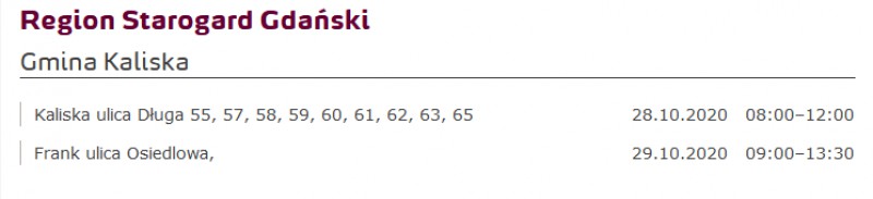Energa-Operator SA informuje o planowym wyłączeniu prądu: