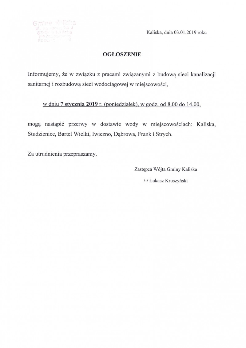Budowa sieci kanalizacji sanitarnej, rozbudowa i przebudowa sieci wodociągowej dla miejscowości Cieciorka, Dąbrowa, Iwiczno wraz z rozbudową oczyszczalni ścieków w Kaliskach