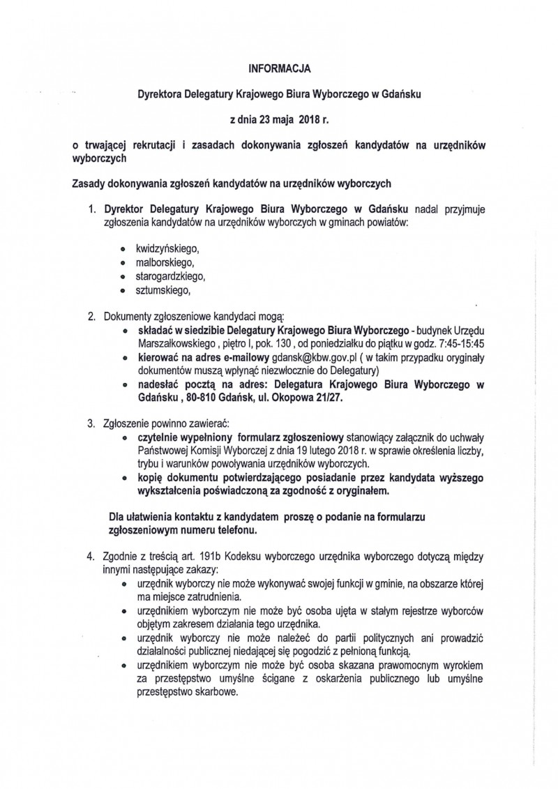 Informacja o trwającej rekrutacji i zasadach dokonywania zgłoszeń kandydatów na urzędników wyborczych