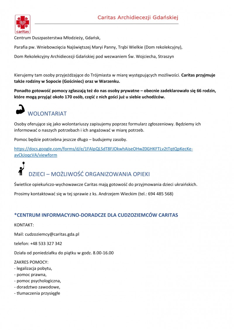 Wsparcie wolontariuszy Pomoc w punktach recepcyjnych